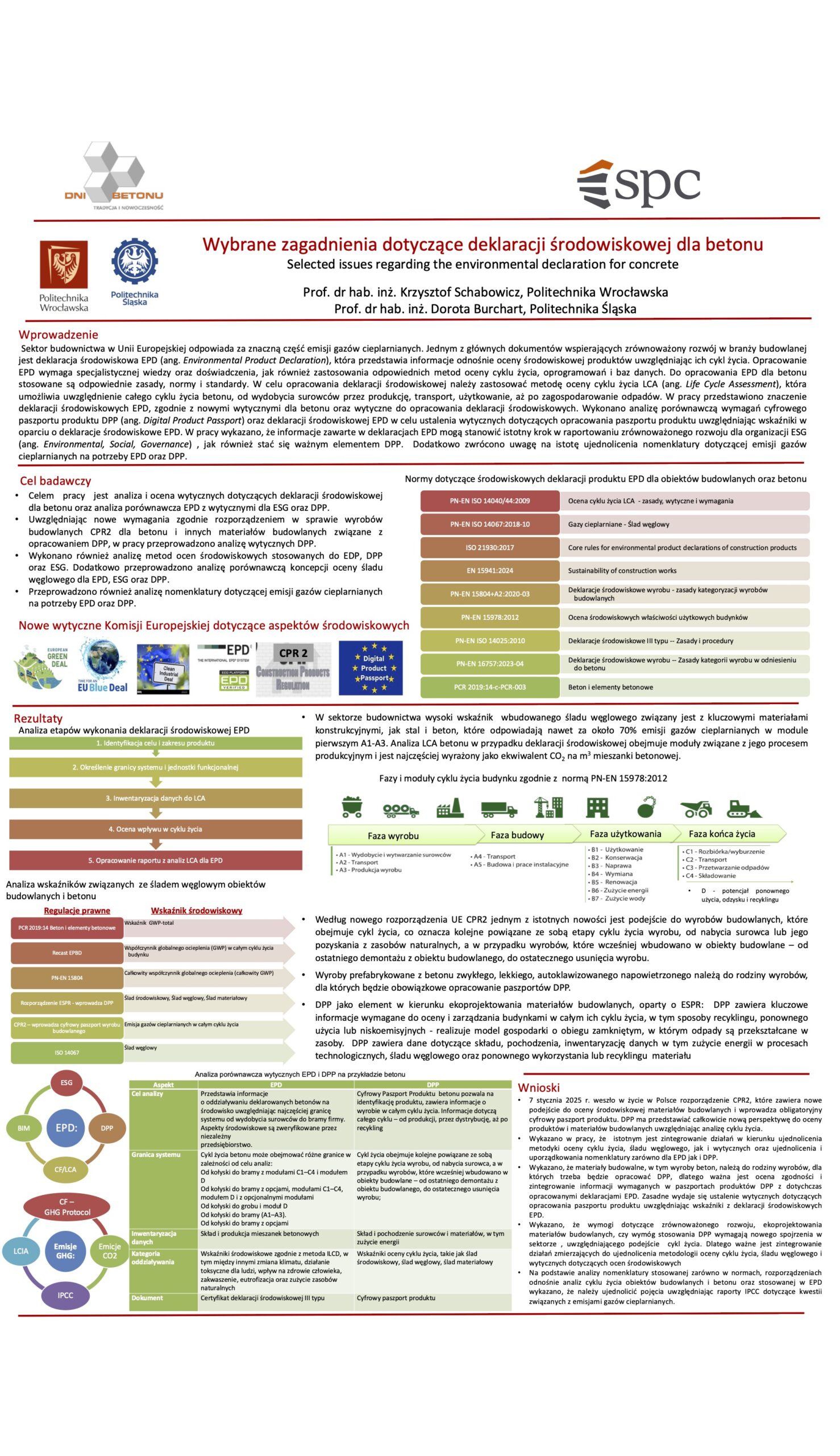 | 3 | Krzysztof Schabowicz – Politechnika Wrocławska, Dorota Burchat – Politechnika Śląska | Wybrane zagadnienia dotyczące deklaracji środowiskowej dla betonu | | Streszczenie | Poster | |