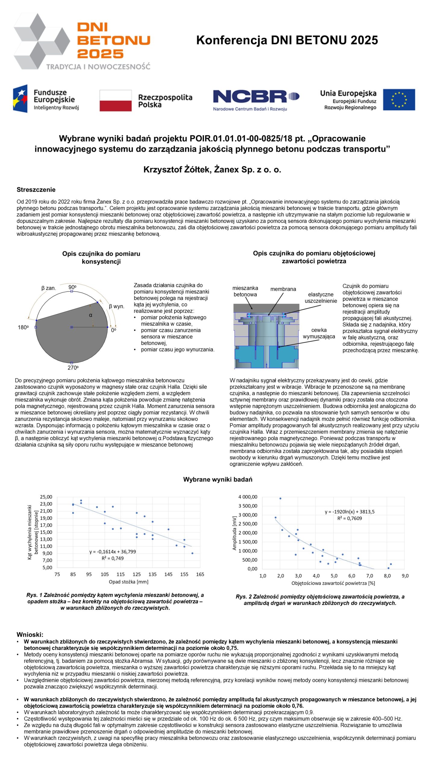 | 6 | Krzysztof Żółtek – Żanex Sp z o.o. | Wybrane wyniki badań projektu POIR.01.01.01-00-0825/18 pt. „Opracowanie innowacyjnego systemu do zarządzania jakością płynnego betonu podczas transportu” | | Streszczenie | Poster | |