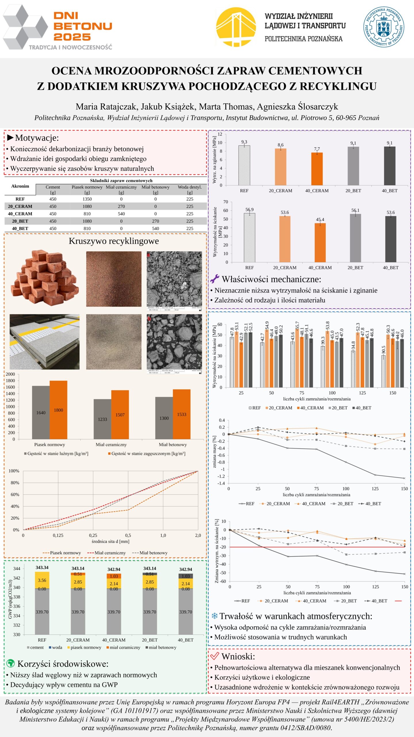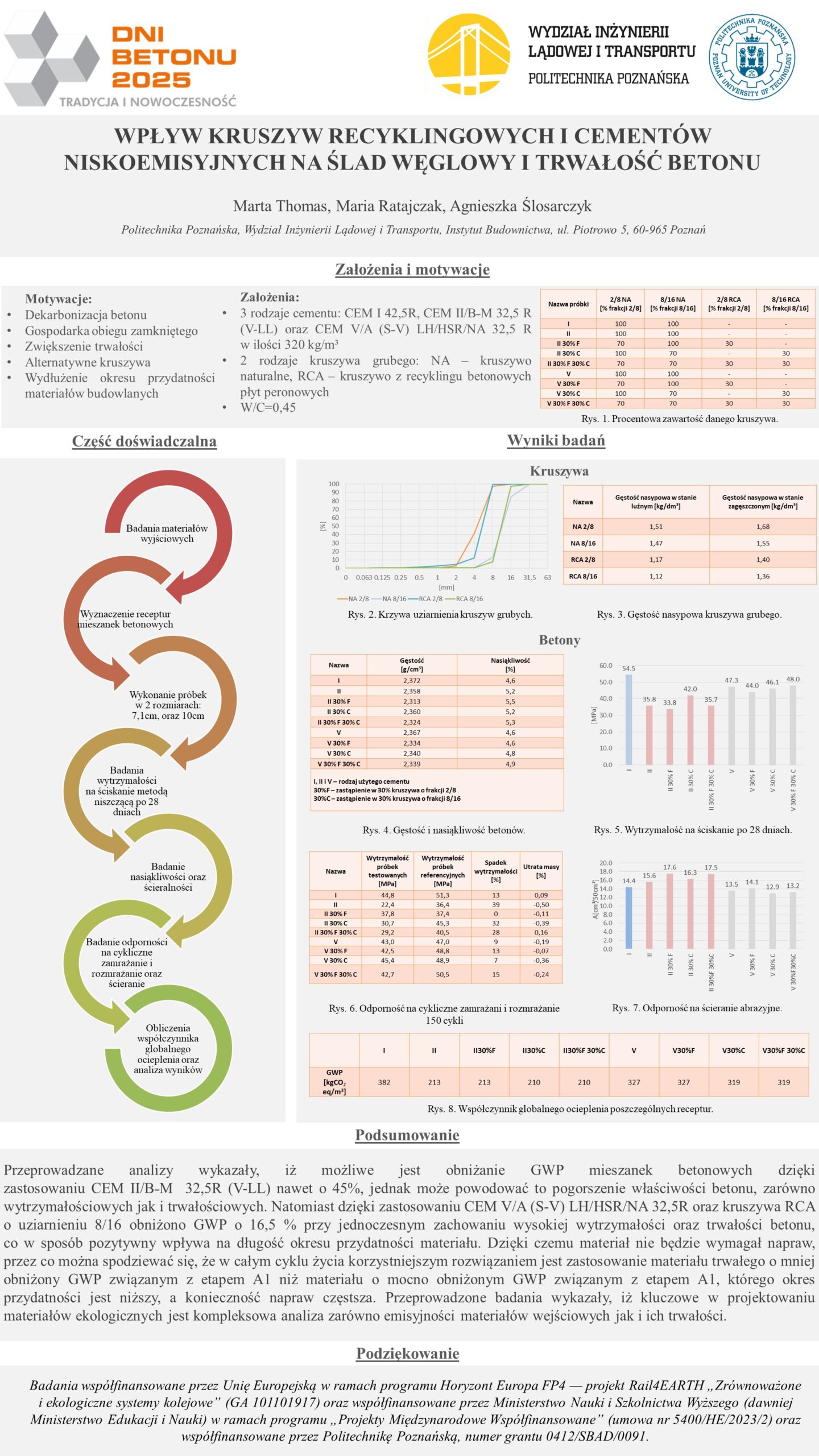 | 18 | Thomas Marta, Ratajczak, Maria Ślosarczyk, Agnieszka – Politechnika Poznańska | Wpływ kruszyw recyklingowych i cementów niskoemisyjnych na ślad węglowy i trwałość betonu | | Streszczenie | Poster | |