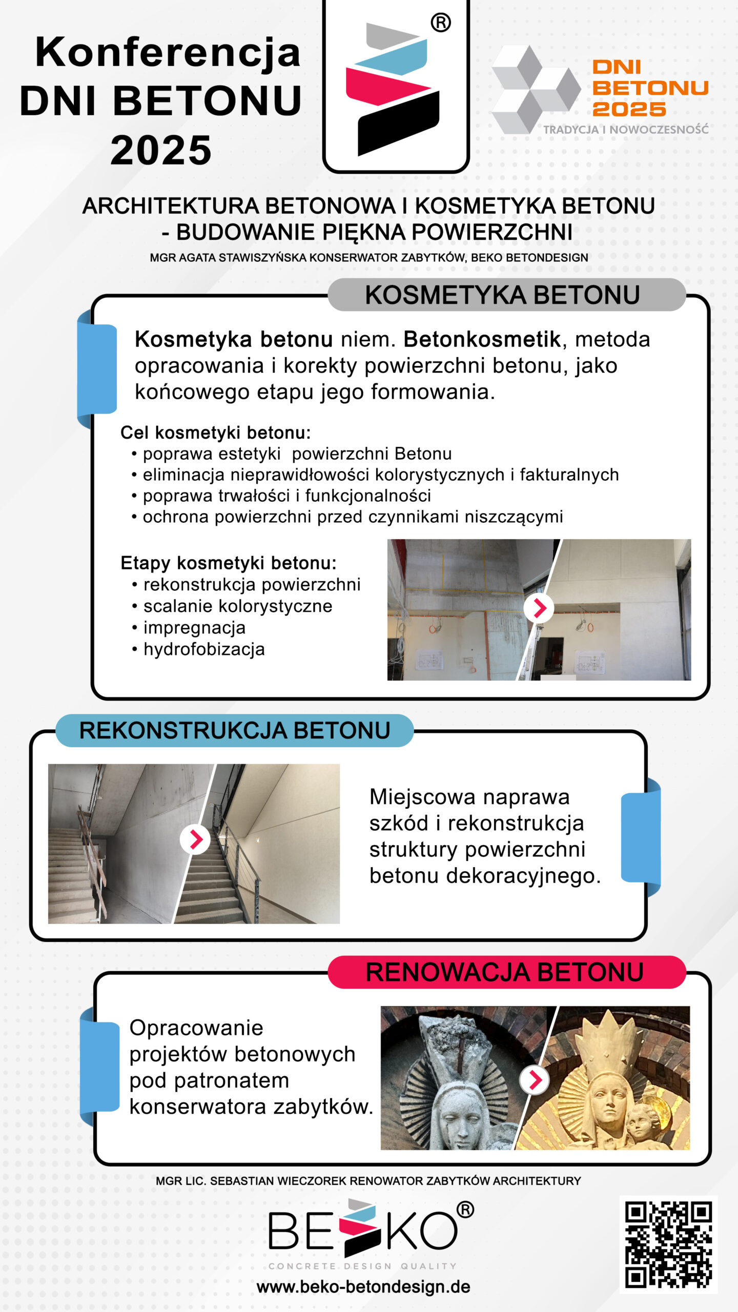 | 9 | Agata Stawiszyńska, Sebastian Wieczorek – Beko-Betondesign | Architektura betonowa i kosmetyka betonu – budowanie piękna powierzchni | | Streszczenie | Poster | |