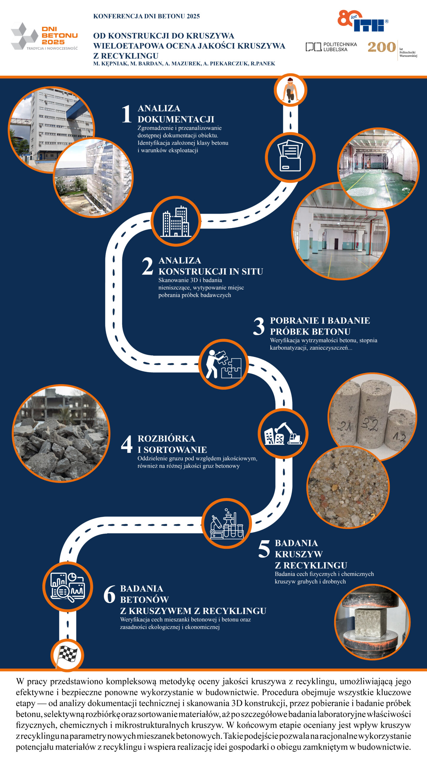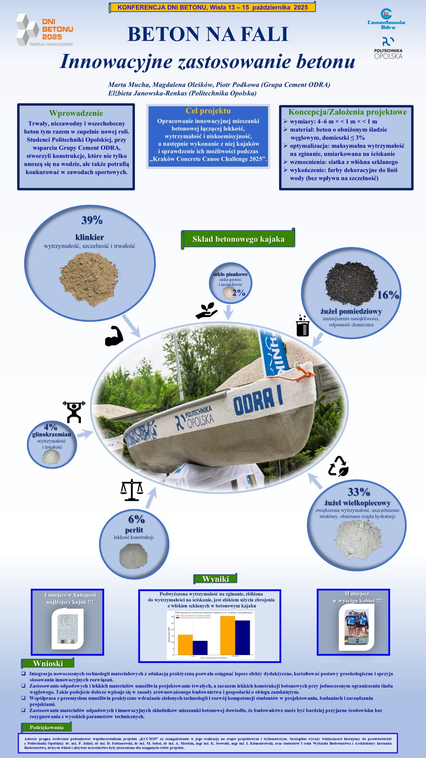 | 17 | Magdalena Oleśków, Marta Mucha, Piotr Podkowa – Grupa Cement ODRA, Elżbieta Jankowska-Renkas – Politechnika Opolska | Beton na fali – innowacyjne zastosowanie betonu | | Streszczenie | Poster | |