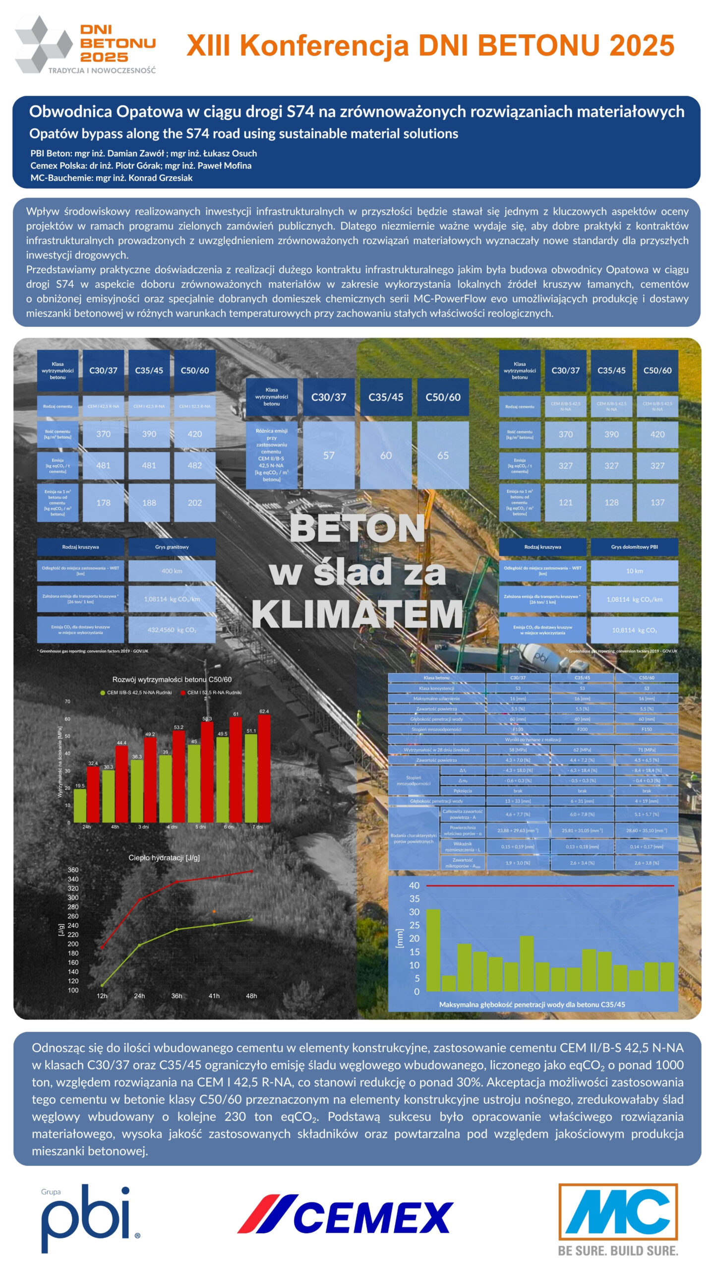 | 19 | Damian Zawół, Łukasz Osuch – PBI Beton, Paweł Morfina, Piotr Górak – Cemex Polska Sp z.o.o., Konrad Grzesiak – MC-Bauchemie Sp z.o.o. | Obwodnica Opatowa w ciągu drogi S74 na zrównoważonych rozwiązaniach materiałowych | | Streszczenie | Poster | |