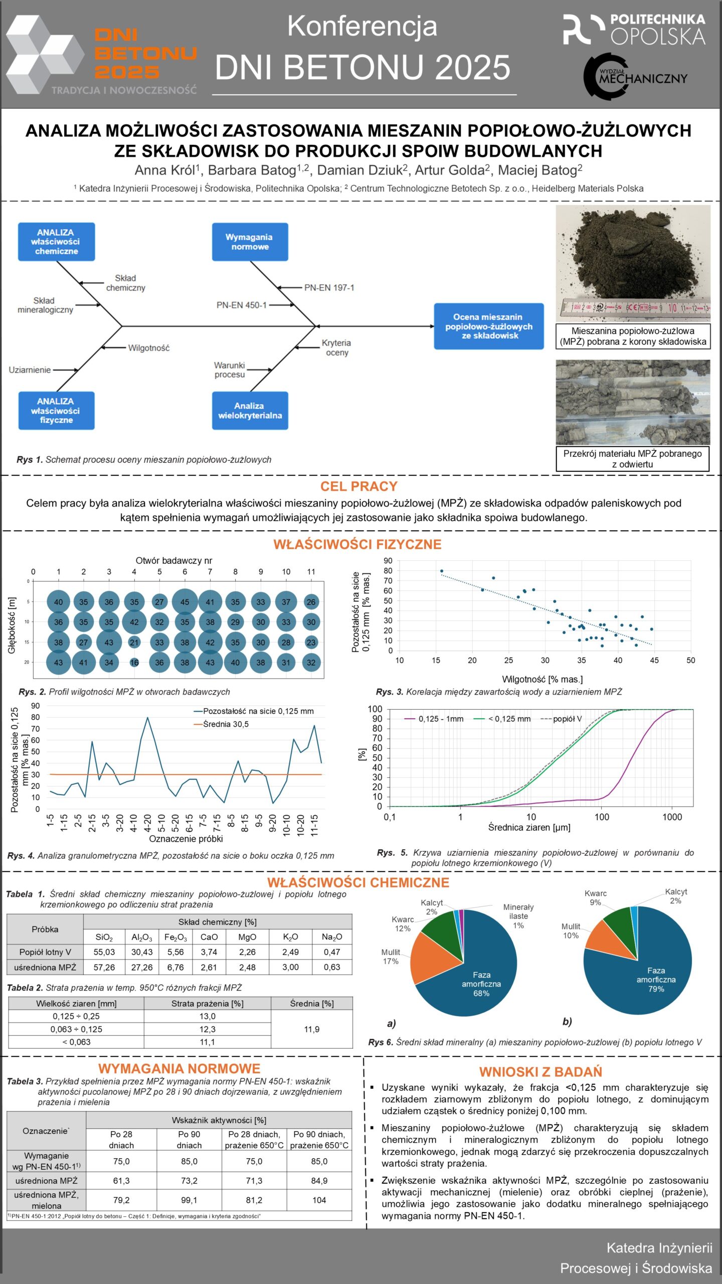 | 29 | Barbara Batog, Anna Król – Politechnika Opolska, Barbara Batog, Damian Dziuk, Maciej Batog, Artur Golda – Centrum Technologiczne Betotech Sp. z o.o | Analiza możliwości zastosowania mieszanin popiołowo –żużlowych ze składowisk do produkcji spoiw budowlanych | | Streszczenie | Poster | |