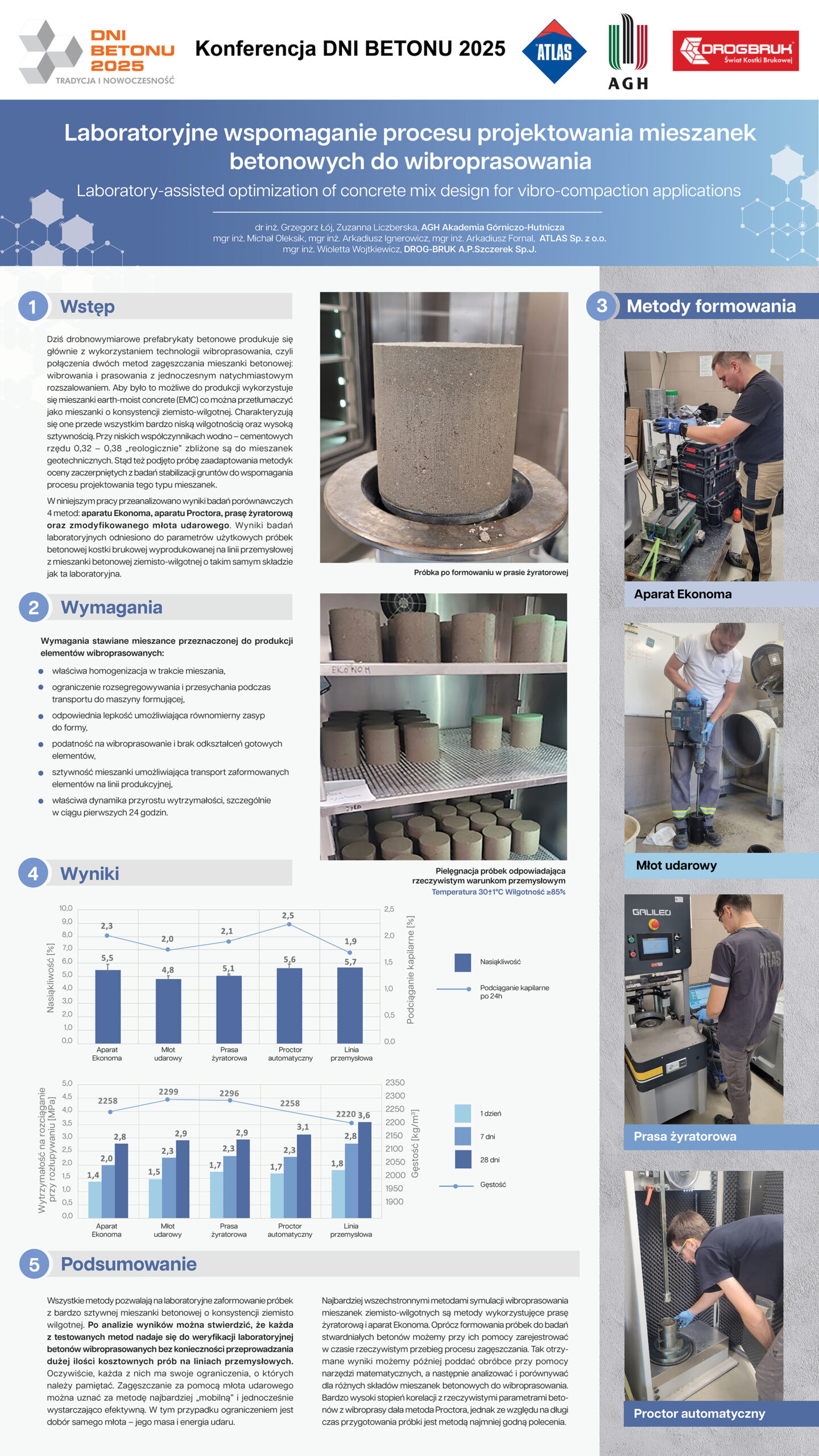 | 37 | Grzegorz Łój, Zuzanna Liczberska – AGH w Krakowie, Michał Oleksik, Arkadiusz Ignerowicz, Arkadiusz Fornal, ATLAS Sp. z o.o, Wioletta Wojtkiewicz – DROG-BRUK… Sp.J | Laboratoryjne wspomaganie procesu projektowania mieszanek betonowych do wibroprasowania | | Streszczenie | Poster | |