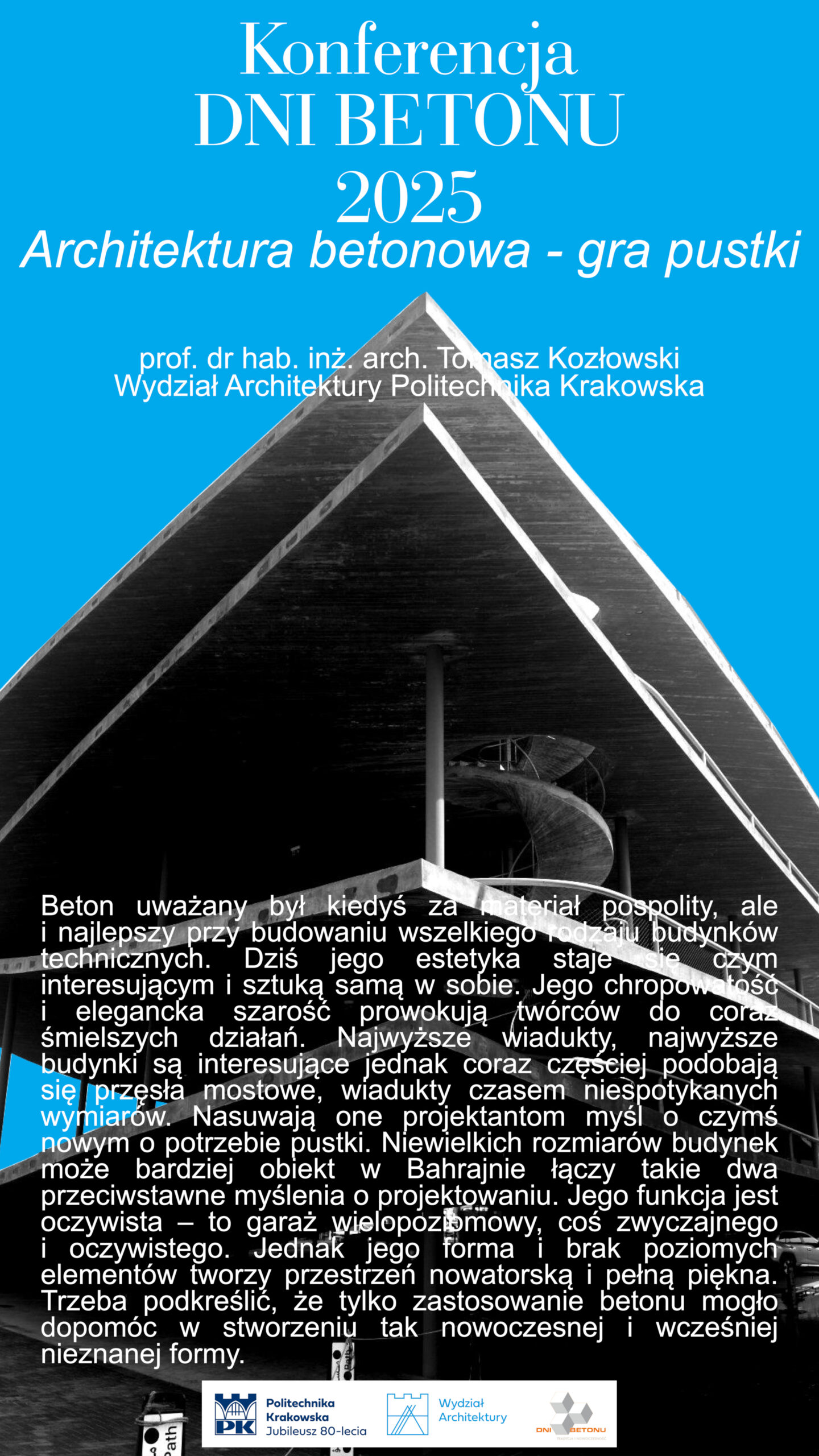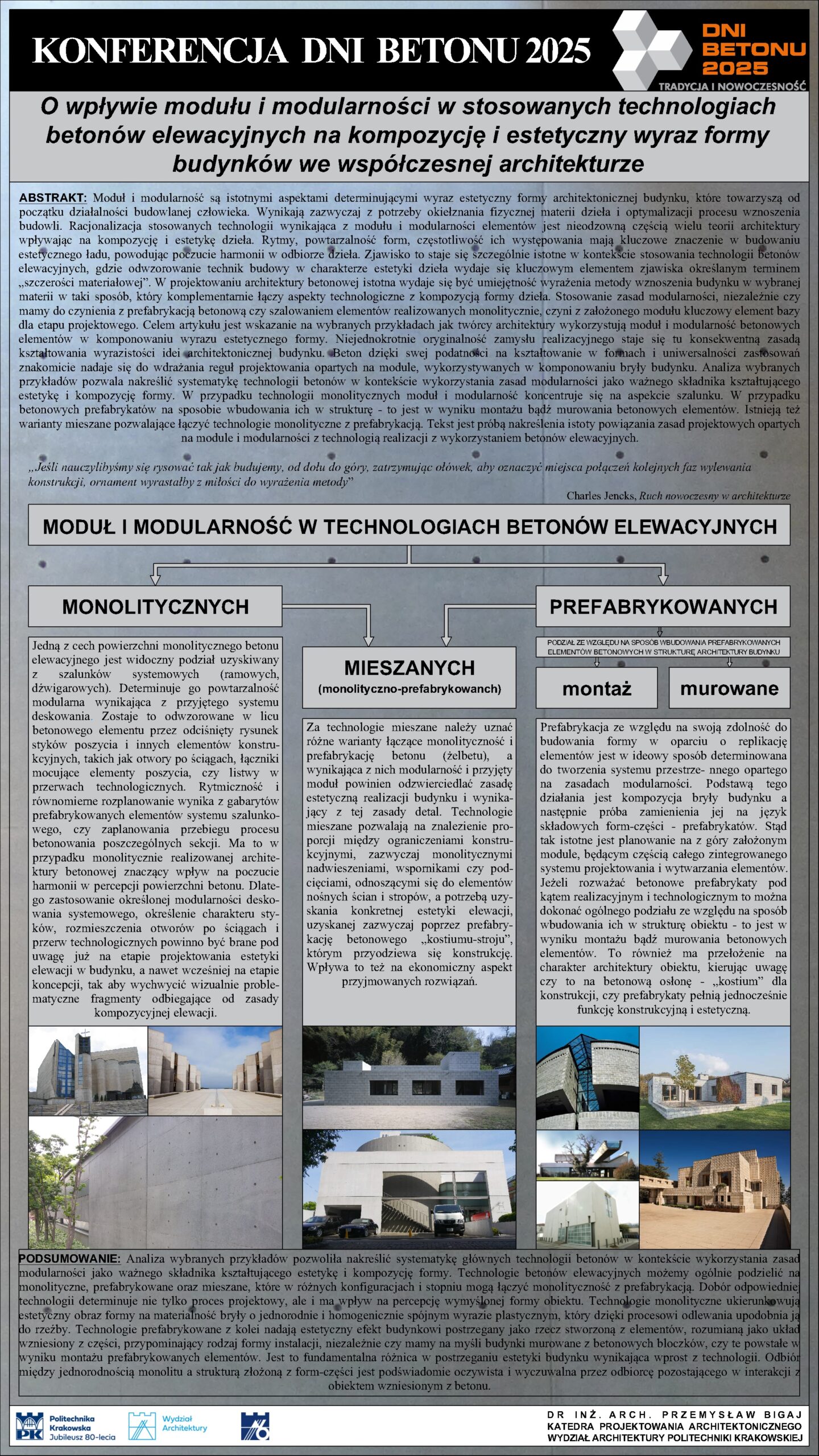 | 43 | Tomasz Kozłowski – Wydział Architektury Politechniki Krakowskiej | Architektura betonowa – gra pustki | | Streszczenie | Poster | |