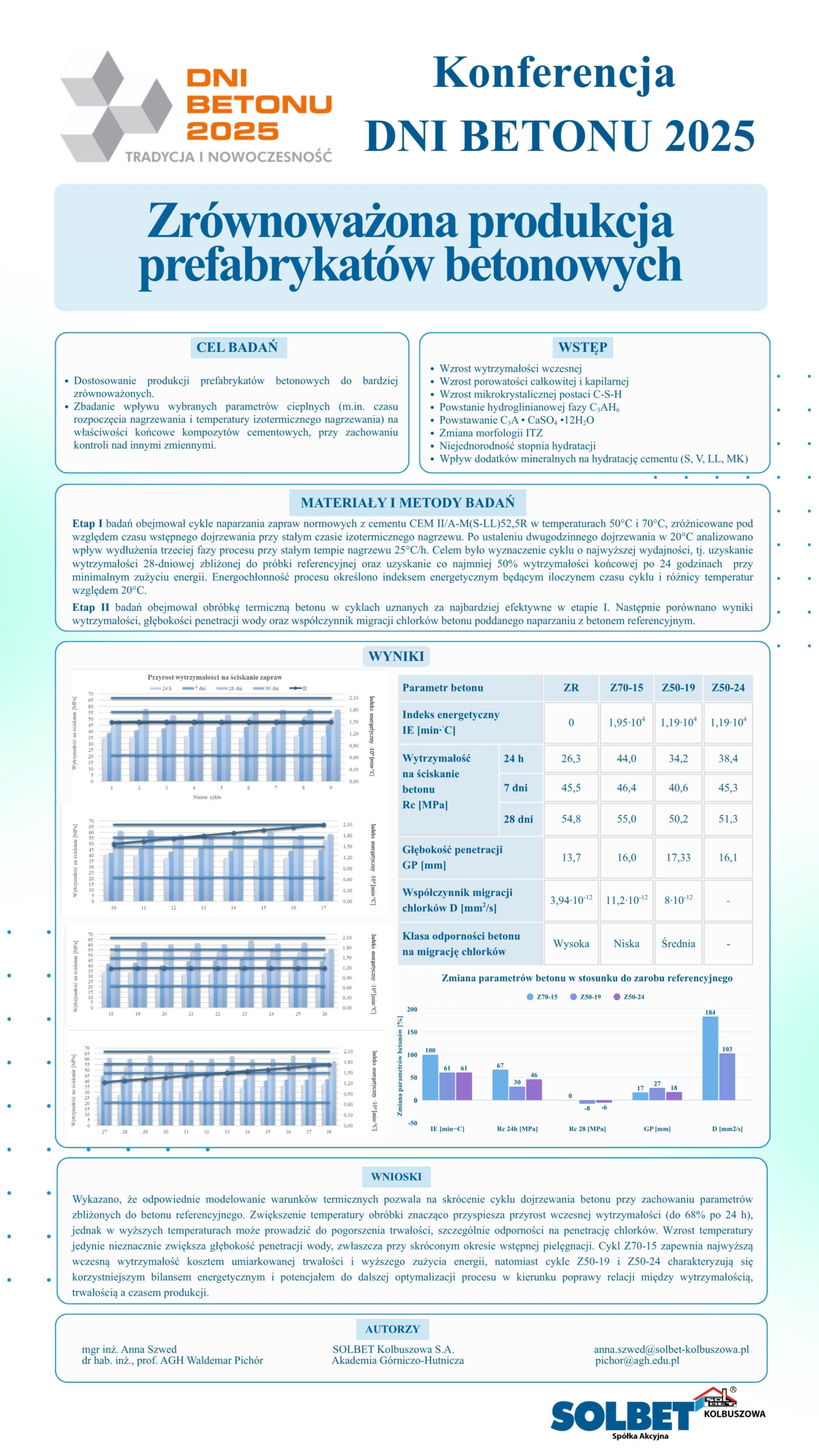 | 46 | Anna Szwed – Solbet Kolbuszowa S.A., Waldemar Pichór – Akademia Górniczo-Hutnicza w Krakowie | Optymalizacja cyklu obróbki termicznej betonu w kontekście zrównoważonej produkcji prefabrykatów betonowych | | Streszczenie | Poster | |